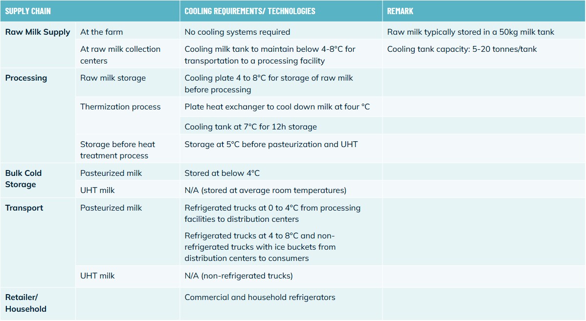 Overview of refrigeration requirements and cold chain technologies for dairy products in Thailand