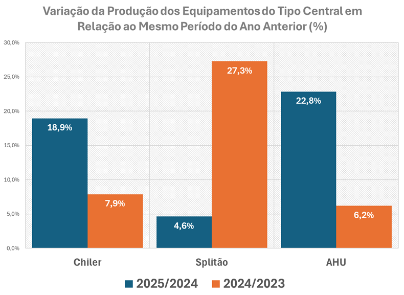 Among the different technologies, air handling units (AHUs) stood out as the fastest-growing segment (+22.8% compared to the same period the year before). Chiller systems production increased by 18.9%, while split AC central systems production increased by 4.6%. This trend reflects the growing importance of indoor air quality and integrated HVAC systems across sectors.